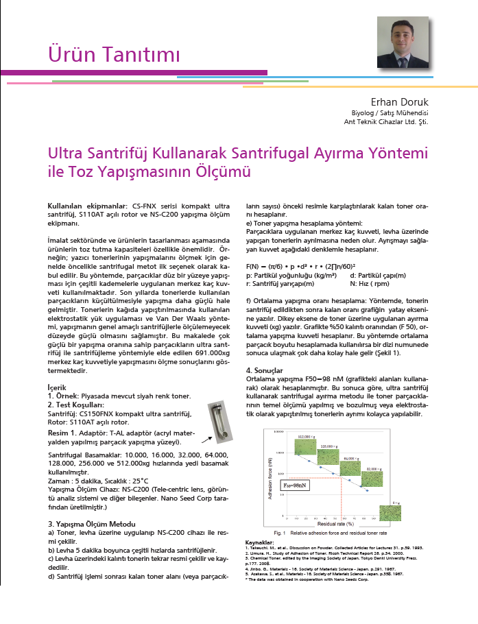 Ultra Santrifüj Kullanılarak Santrifugal Ayırma Yöntemi ile Toz Yapışmasının Ölçümü