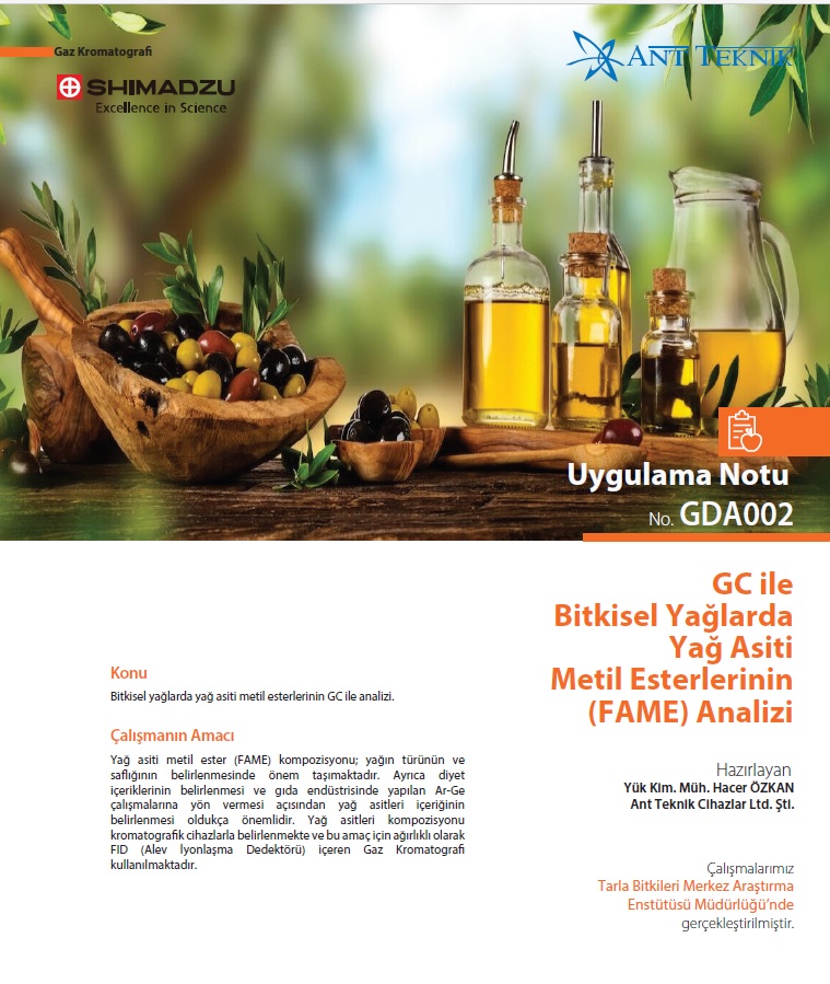 Yağ asiti metil ester (FAME) kompozisyonu; yağın türünün ve saflığının belirlenmesinde önem taşımaktadır. Ayrıca diyet içeriklerinin belirlenmesi ve gıda endüstrisinde yapılan Ar-Ge çalışmalarına yön vermesi açısından yağ asitleri içeriğinin belirlenmesi oldukça önemlidir.